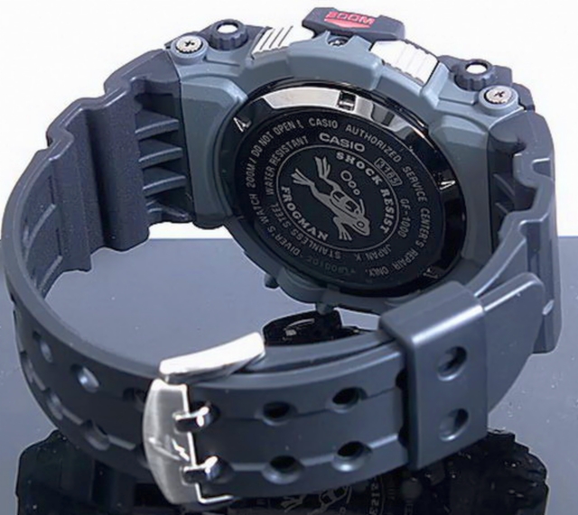 Unlike other G-shock models which are held by 4 screws, the GF-1000-1 features a Screw Lock Back. The back and bezel are made of diamond-like carbon that resists scratching and wear.